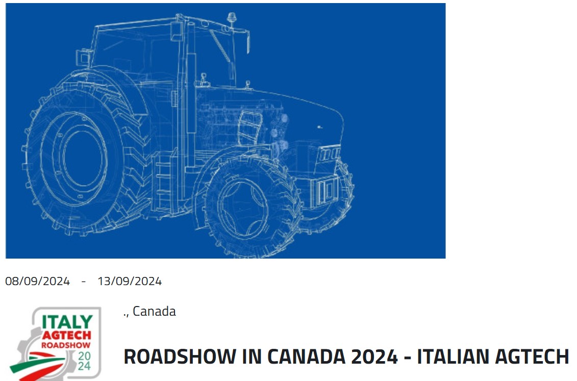 Agenzia-ICE organizza in collaborazione con FederUnacoma un roadshow itinerante sulle macchine agricole italiane in Canada, dall’8 al 13 settembre 2024.
