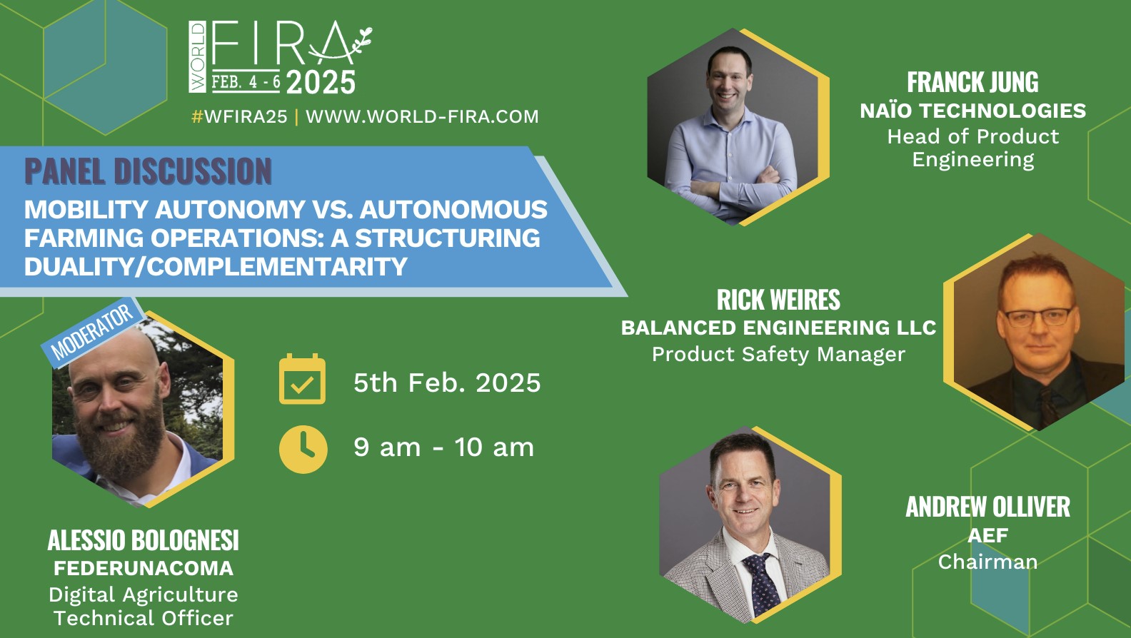 Alessio Bolognesi, del servizio tecnico FederUnacoma e segretario operativo dell’associazione che rappresenta i costruttori di sistemi e tecnologie digitali per macchine e produzioni agricole in seno alla Federazione, Agridigital, sarà poi il moderatore dell’incontro Mobility Autonomy vs. Autonomous Farming Operations: a Structuring Suality/Complementarity" in programma per il 5 febbraio alle 9.