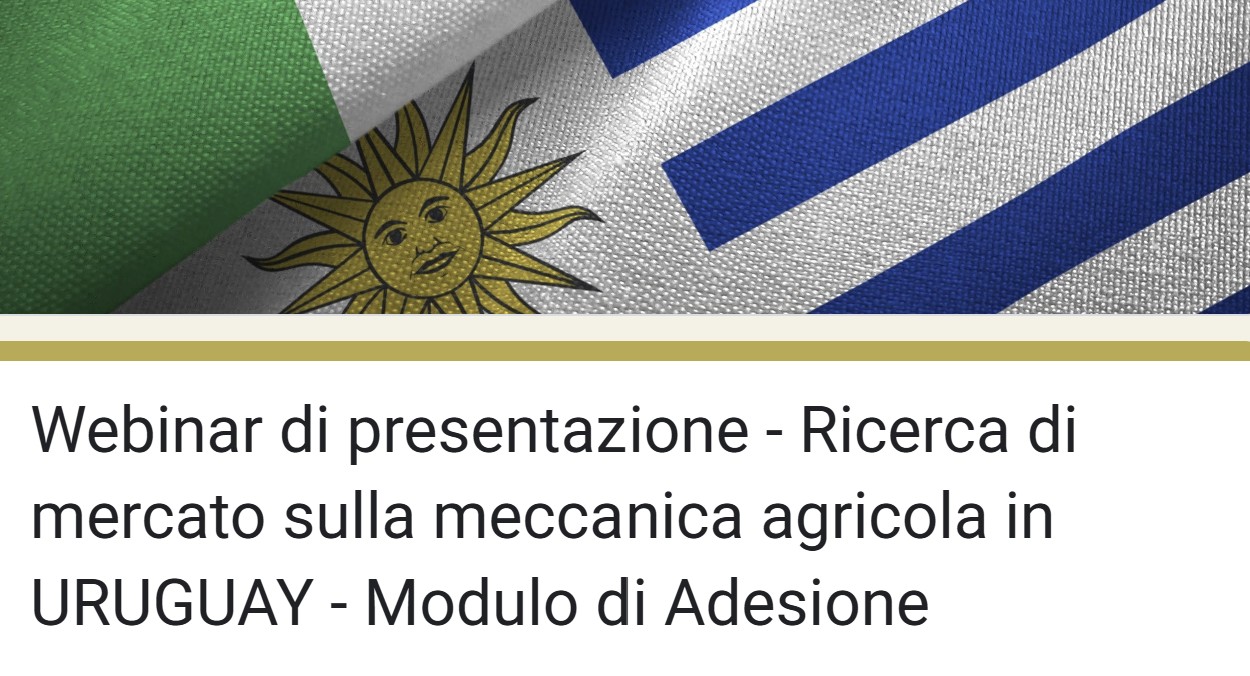 Agenzia ICE, in collaborazione con FederUnacoma, organizza un webinar di presentazione di una ricerca sul mercato meccanico-agricolo dell’Uruguay.
